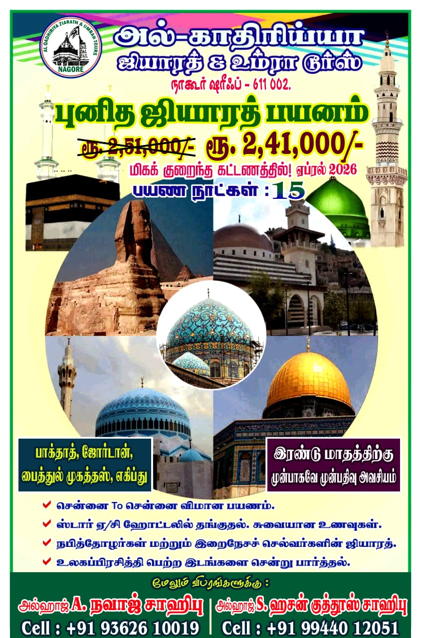 “May Allah bless and guide you on your journey with Al Qadhiriya Ziyarath Holy Tours and Travels. May this sacred pilgrimage deepen your faith and enrich your soul.”